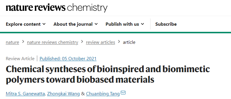 本网讯 近日,安徽农业老员工物质分子工程中心与合作者共同撰写了综述文章,探讨了农林生物基材料在仿生领域的最新进展,并从交联网络、动态相互作用和自组装等角度,提出对生物基仿生材料化学合成的新见解。相关文章以“Chemical syntheses of bioinspired and biomimetic polymers toward biobased materials”为题发表在Nature Reviews Chemistry(Nature子刊 影响因子34.035),汪钟凯教授为本综述共同第一作者。