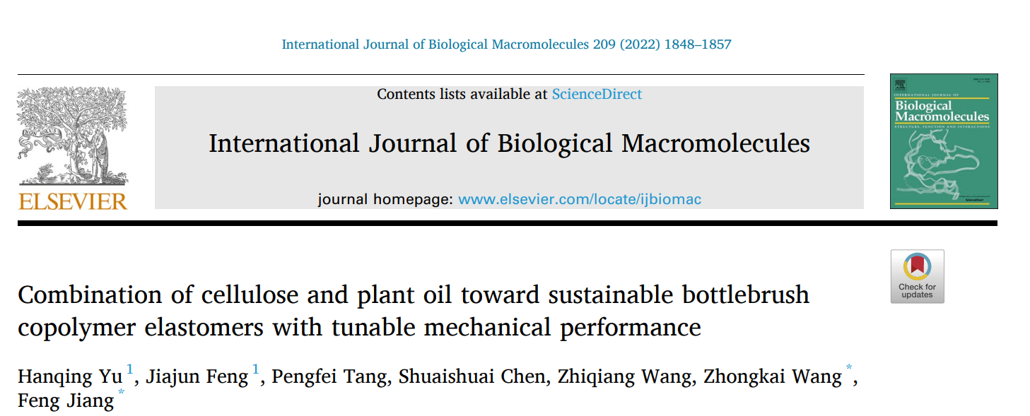 近期,yl6809永利检测中心蒋峰副教授在生物基弹性体领域取得进展,相关研究发表了三篇高水平研究论文,其中两篇发表于《碳水化合物》(《Carbohydrate Polymers》,中科院一区TOP,IF=10.723),另外一篇发表于《国际生物大分子》(《International Journal of Biological Macromolecules》,中科院一区TOP,IF=8.025)。