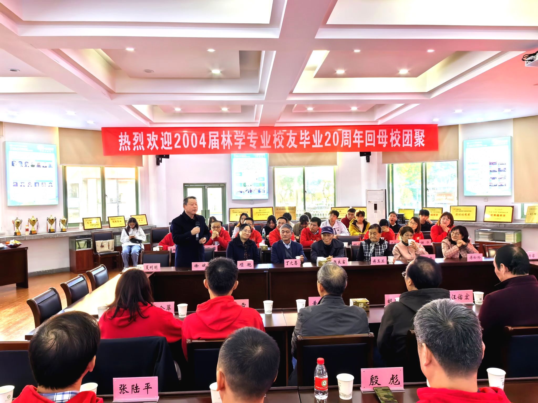 本网讯 风雨历程二十载,今朝再叙同窗情。11月23日,2004届林学专业员工返校开展系列活动。yl6809永利检测中心经理徐斌、党委副书记夏利明及林学专业部分教师应邀参加座谈。